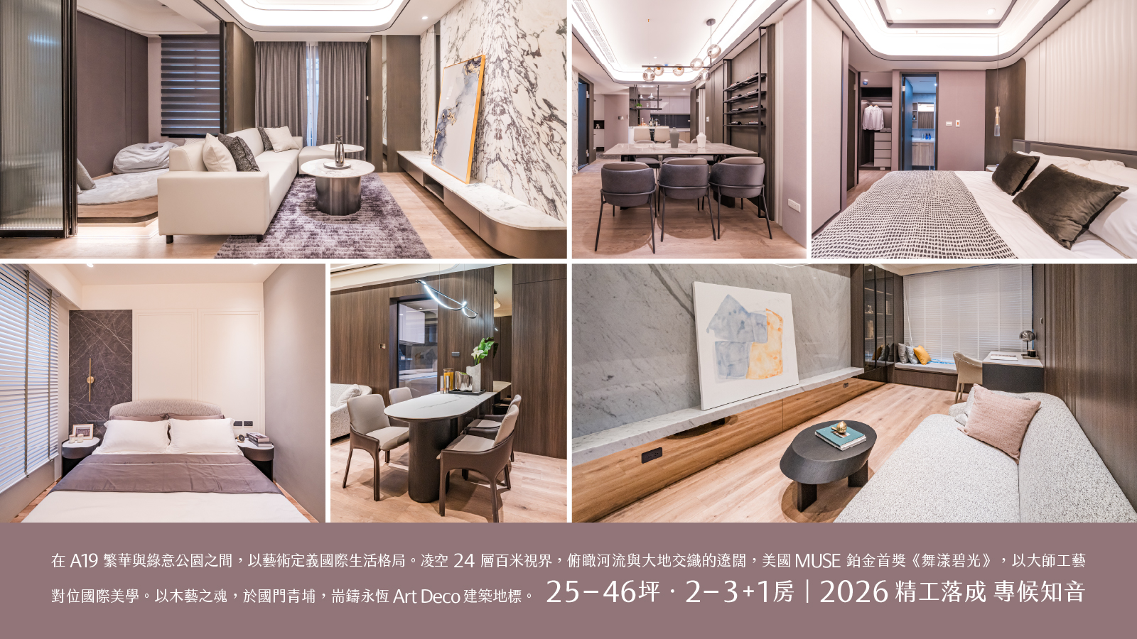凌空 24 層百米視界,俯瞰河流與大地交織的遼闊, 美國MUSE 鉑金首獎《舞漾碧光》,以大師工藝對位國際美學。 以木藝之魂,於國門青埔,耑鑄永恆Art Deco建築地標。 25–46坪.2-3+1房|2026精工落成 專候知音。