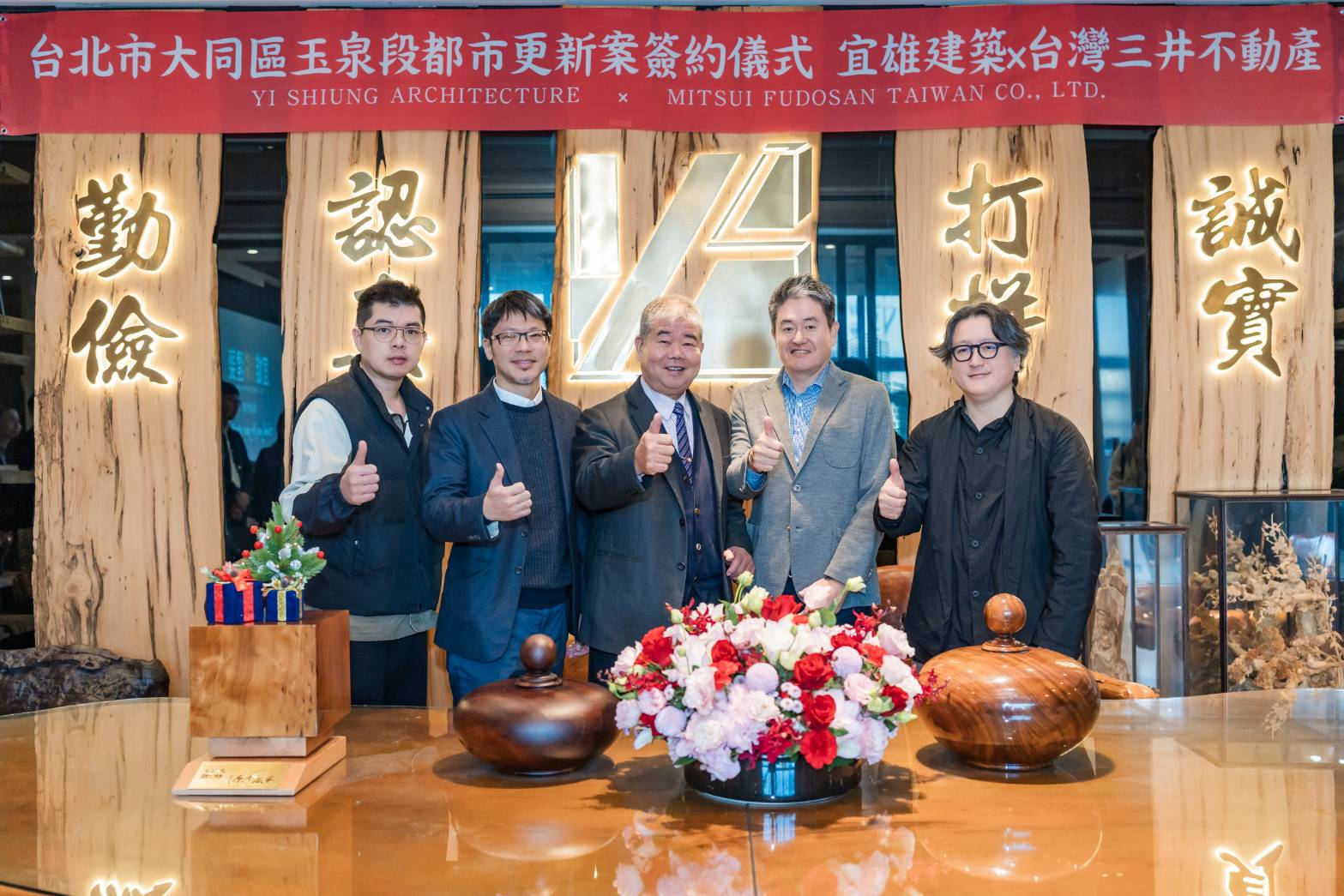▲宜雄建設總經理賴靈焜(左一)、..