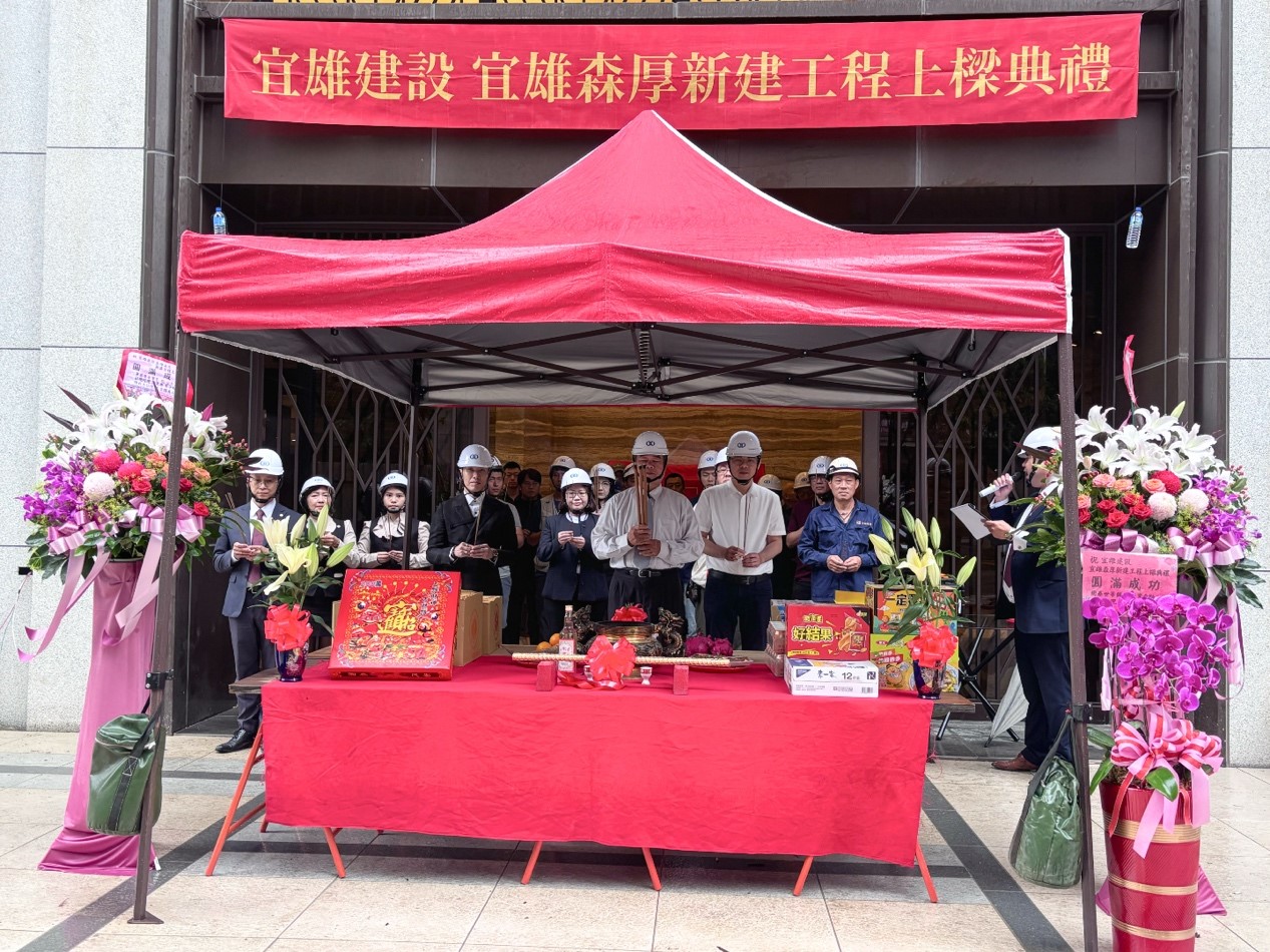 宜雄建設有限公司於中華民國一一四年十一月十一日(歲次乙巳年 農曆九月二十二日)上午十時,為旗下新建工程案「宜雄森厚」舉辦盛大上樑典禮。典禮由賴森源董事長、賴靈欣總經理親自主典,現場來賓雲集、各協力廠商以及全體工務團隊共同與會祈福,象徵宜雄建設對本案的高度重視與全力投入。